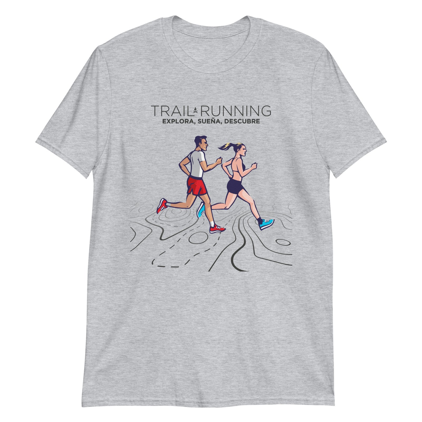 La camiseta casual unisex Trail Running es perfecta para aquellos que aman explorar, soñar y descubrir nuevos lugares. Con una impresión inspirada en dos corredores de trail corriendo sobre un mapa topográfico, esta camiseta es un verdadero homenaje a la pasión por el trail running y la aventura.