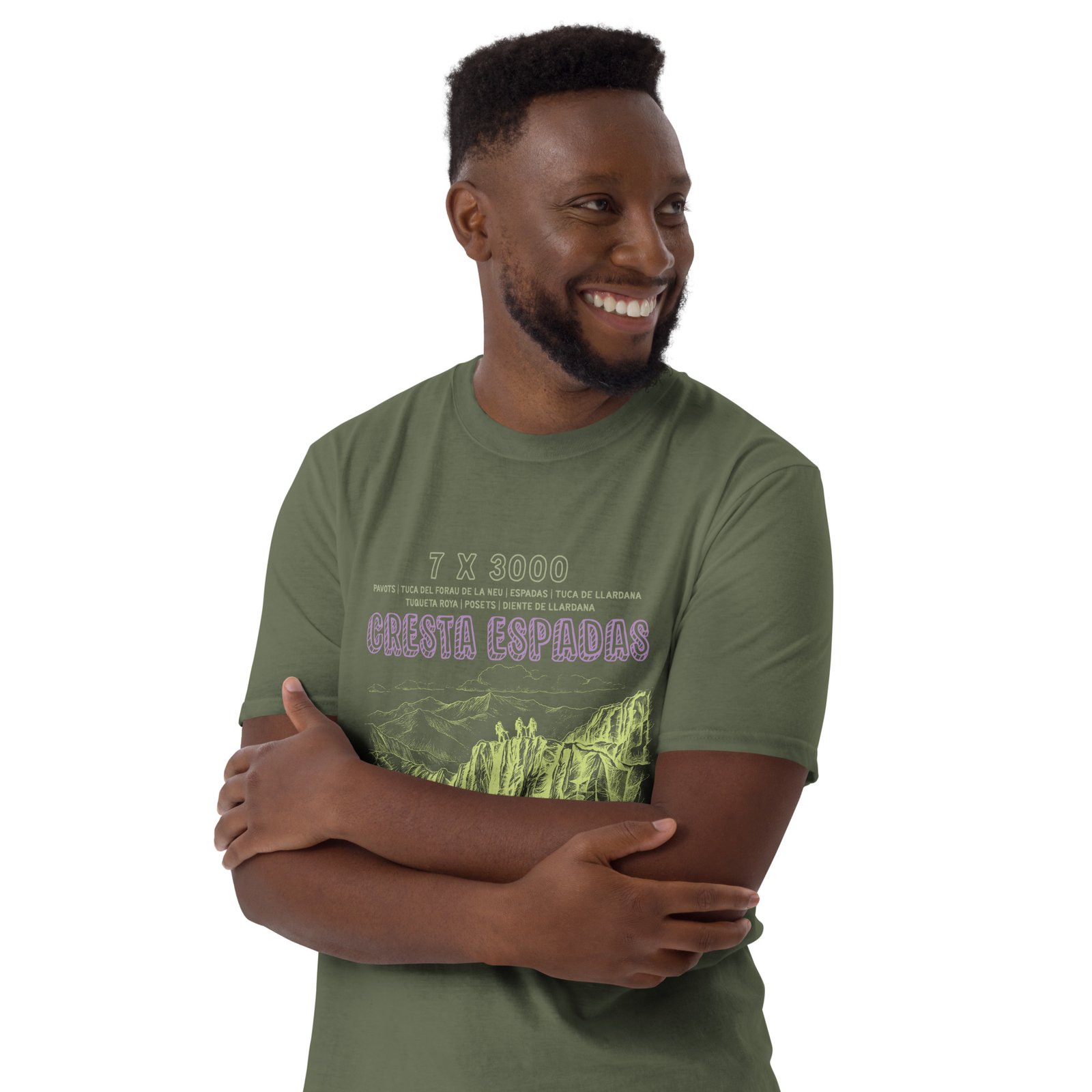 La camiseta casual unisex «Cresta Espadas 7×3000» es para quienes no se conforman con subir una cumbre cuando pueden encadenar siete tresmiles en una sola travesía épica.