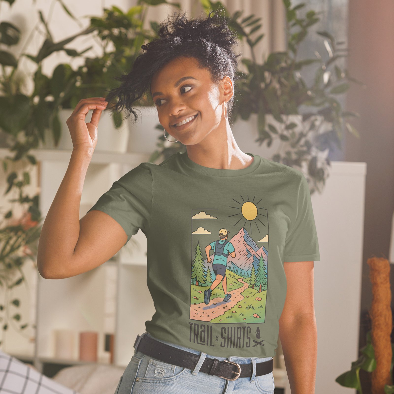 El estampado de la camiseta ESPÍRITU TRAIL muestra a un corredor adentrándose en un sendero montañoso bajo un sol radiante, rodeado de árboles y picos majestuosos. Esta ilustración no solo decora: inspira y motiva. Es el reflejo de quienes buscan nuevos retos, paisajes inolvidables y la conexión con la tierra. Ideal para regalar a amantes del trail running, excursionistas y soñadores de la aventura, esta camiseta es mucho más que una prenda: es una declaración de intenciones.