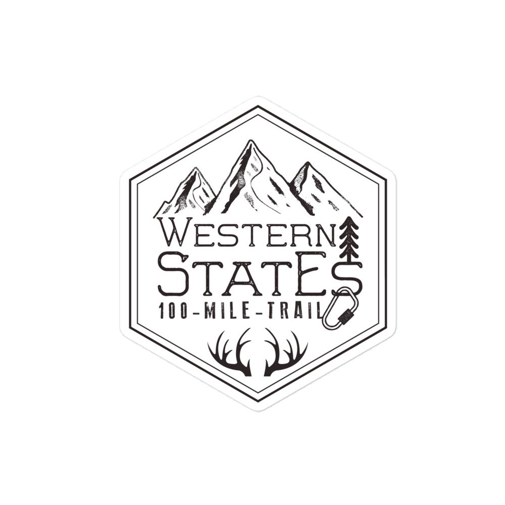 Pegatina que hace honor a la mítica carrera estadounidense La Western States Endurance Run , conocida comúnmente como Western States 100 , es una ultramaratón de 161 km (100,2 millas) que se lleva a cabo en los senderos de las montañas de Sierra Nevada de California cada año el último fin de semana completo de junio. La carrera comienza en la base de la estación de esquí de Olympic Valley y termina en la pista de Placer High School en Auburn, California . El terreno es bastante accidentado, con frecuencia mostrando nieve en los pasos más altos y temperaturas récord durante todo el recorrido.