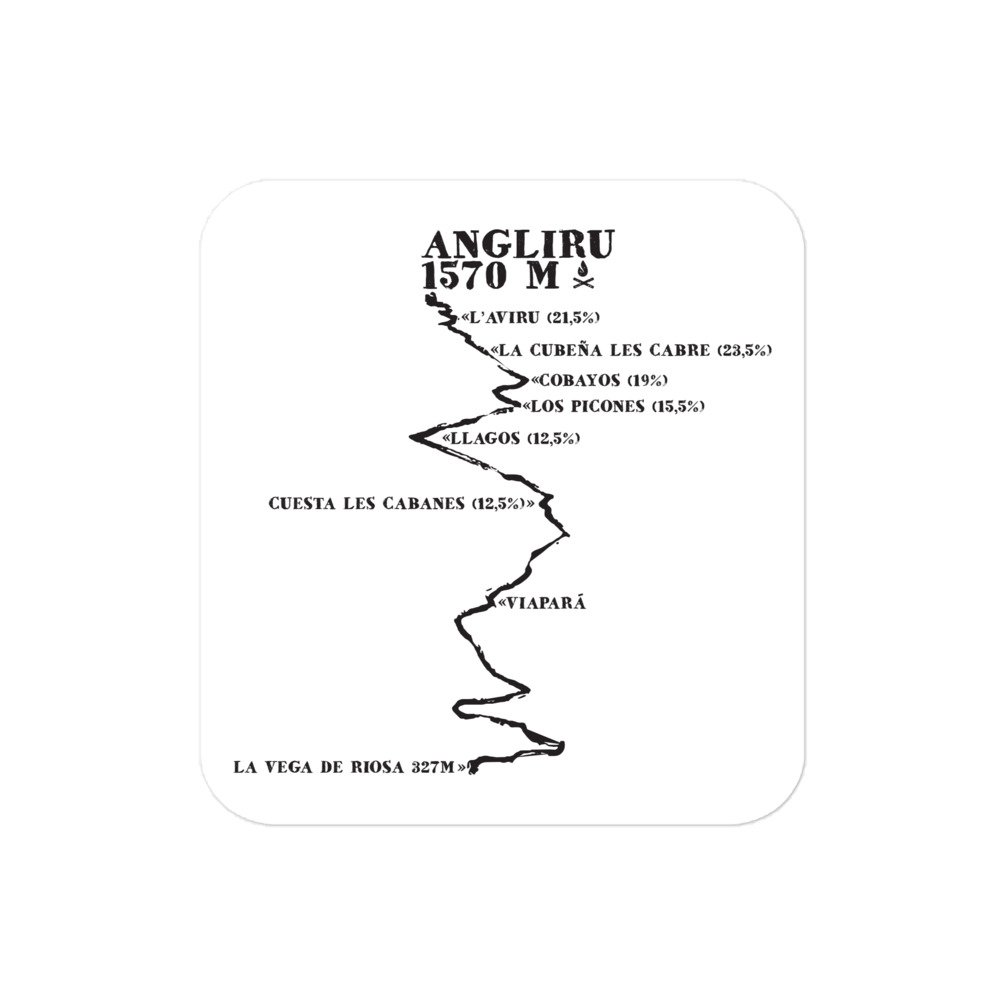 Pegatina de vinilo de alta calidad inspirada en el mítico puerto de montaña ciclista: el Angliru. Representa cada una de sus curvas icónicas con su nombre y desnivel, para que lleves contigo el recuerdo de este desafío épico. ¡Ideal para ciclistas apasionados que quieren rendir homenaje a esta subida legendaria!