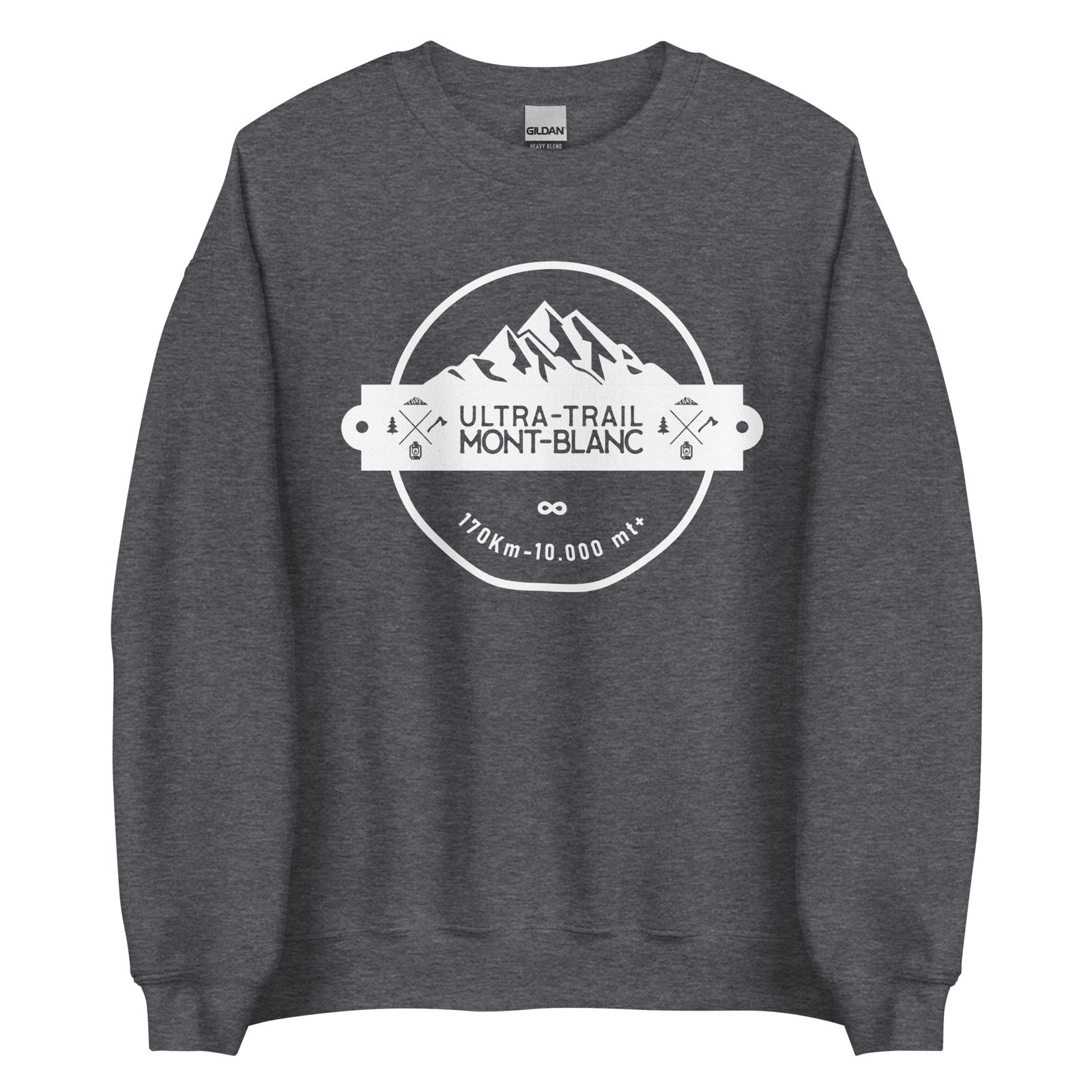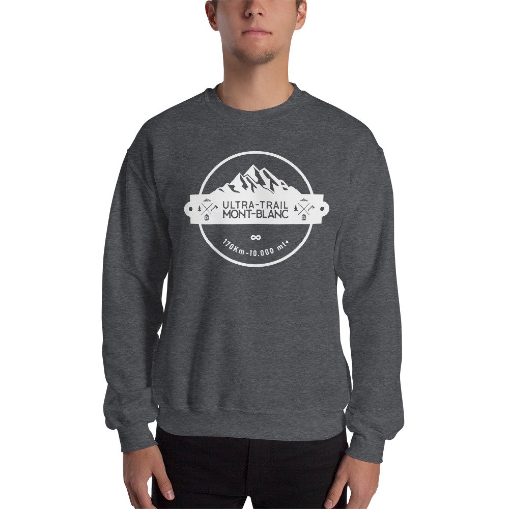 Sudadera que hace referencia a la mítica carrera Ultra-Trail de Mont-Blanc (denominado también UTMB) es una ultra maratón de montaña. Tiene lugar anualmente en los Alpes, atravesando Francia, Italia y Suiza. Con una distancia de unos 171 km y un desnivel positivo de unos 10 000 metros, se la considera la carrera a pie de trail running más prestigiosa del mundo. Es una de las carreras más numerosas, con alrededor de 2,500 participantes.