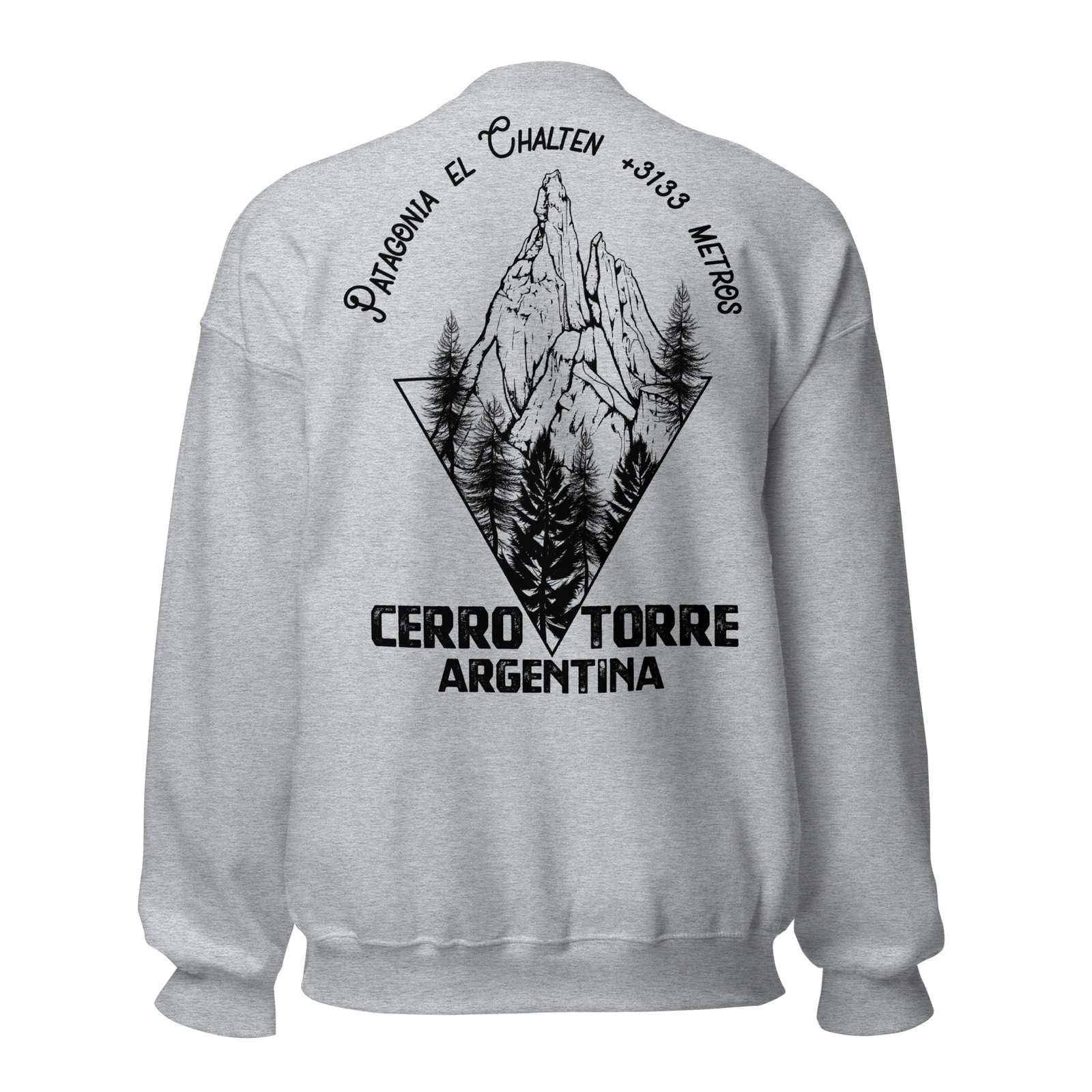 Camiseta dedicada a la mítica escalada de El Cerro Torre que es una montaña de 3133 msnm ubicada en el borde oriental del campo de hielo Patagónico Sur en el sur de la Patagonia, parte austral de América del Sur. Se encuentra en el sector en la frontera entre Argentina y Chile pendiente de delimitación desde el Acuerdo de 1998.