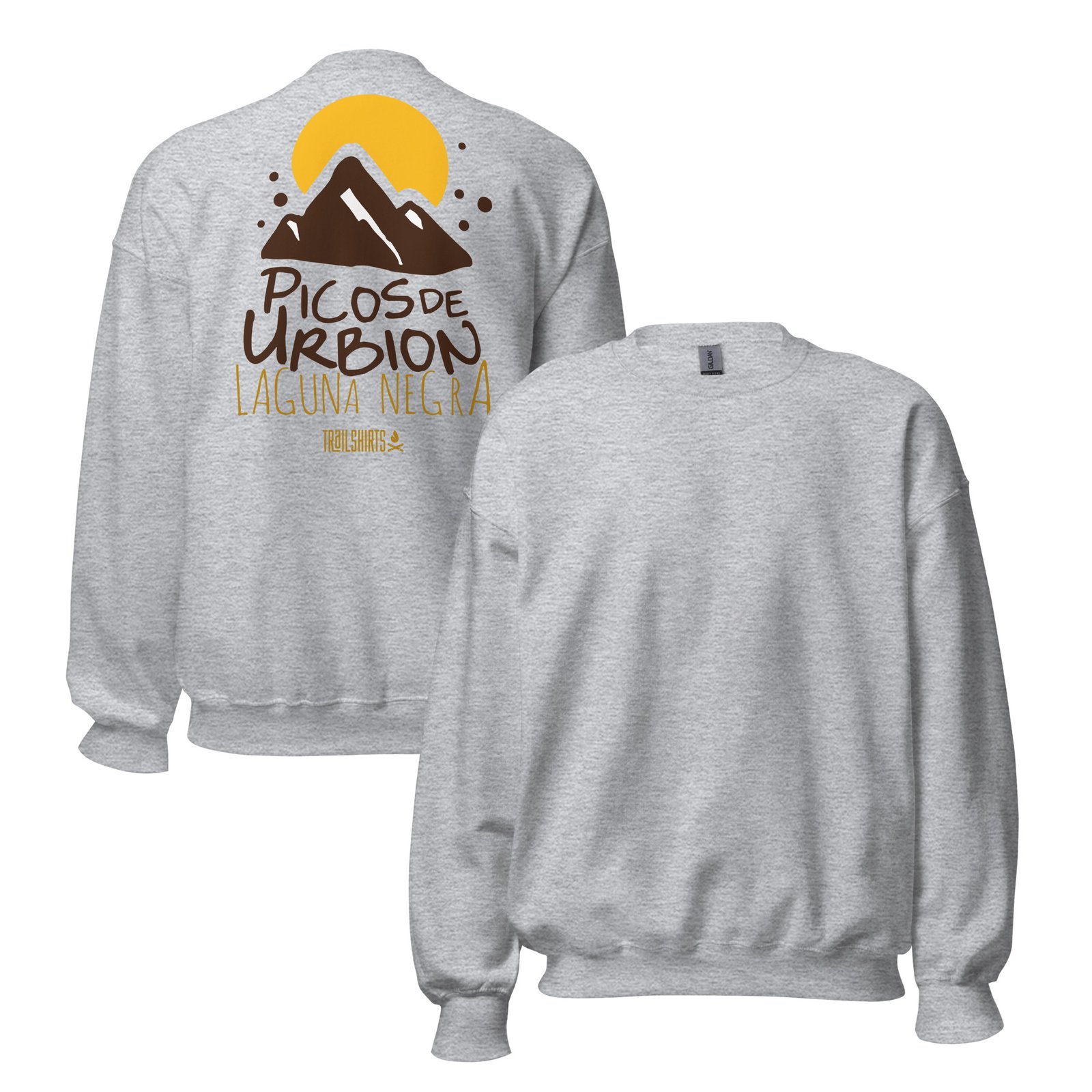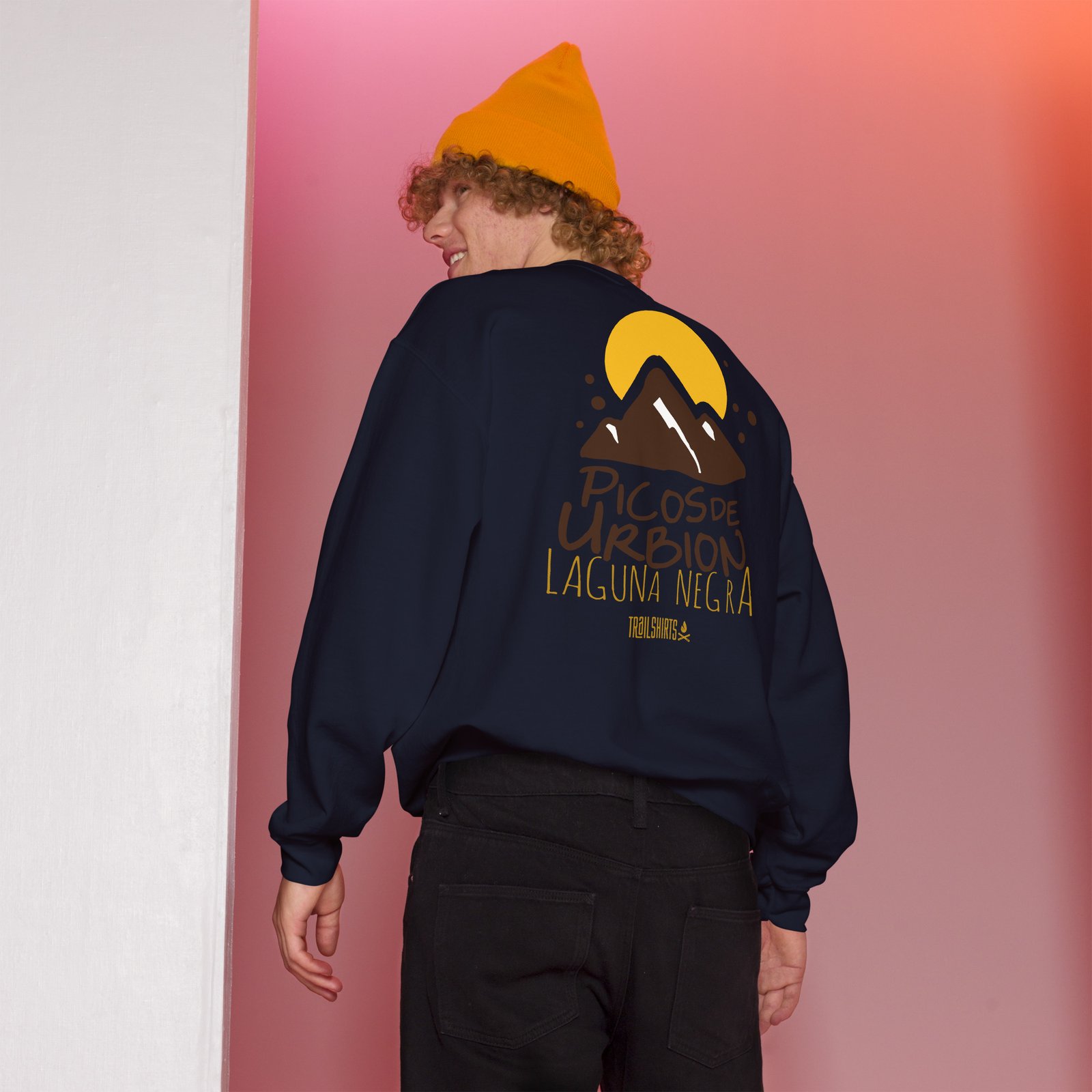 Con el mismo diseño icónico que captura la esencia de los Picos de Urbión, esta sudadera presenta una ilustración artística de montañas nevadas, un sol dorado radiante y la legendaria Laguna Negra en tipografía vintage que despierta el alma exploradora.