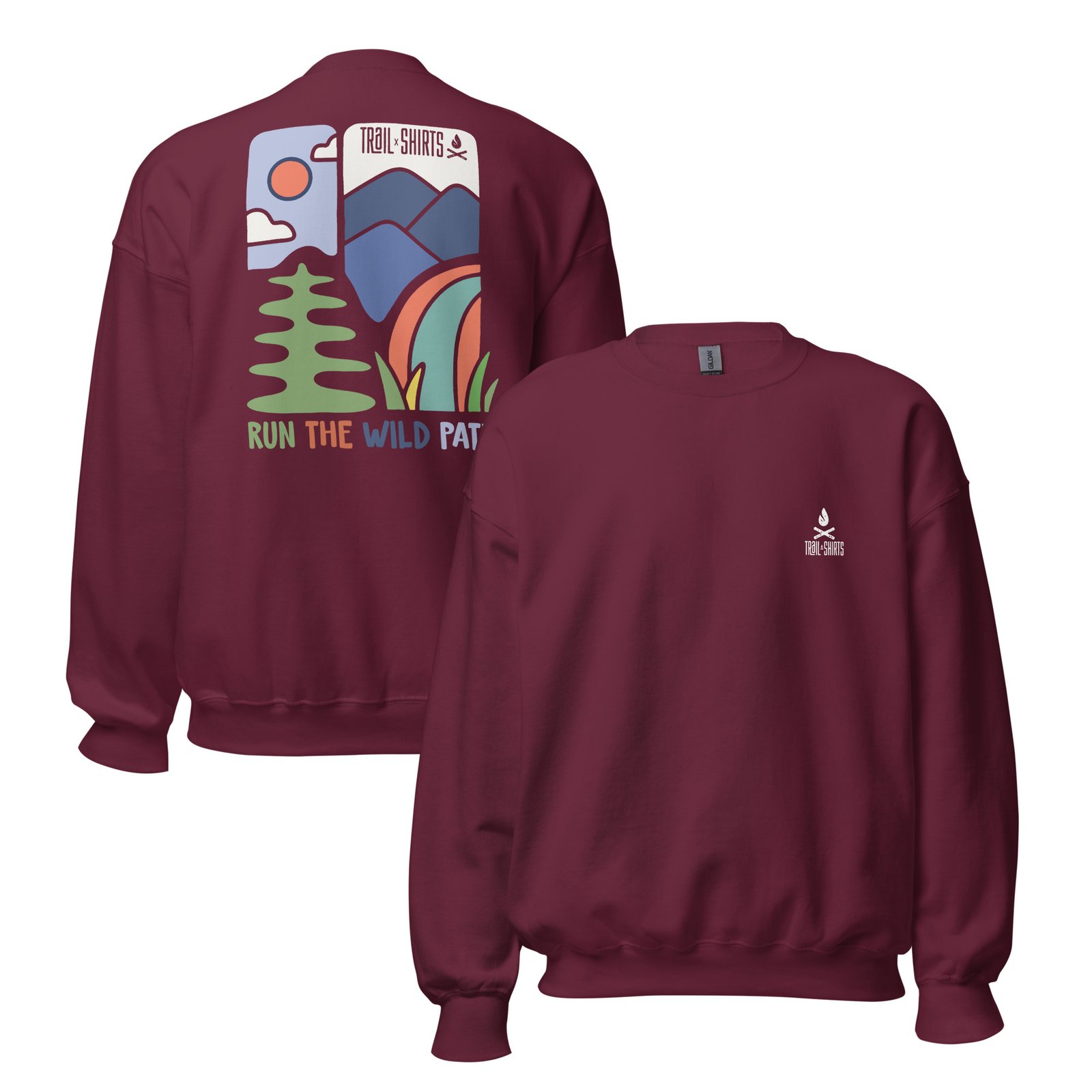Descubre la sudadera unisex «Run The Wild Path», ideal para los amantes del trail running y la naturaleza. Con un diseño vibrante en la parte trasera que evoca paisajes montañosos y un mensaje motivador, esta sudadera de alta calidad en color burdeos ofrece comodidad, calidez y un estilo aventurero. Perfecta para usar en senderos, entrenamientos o en tu día a día.