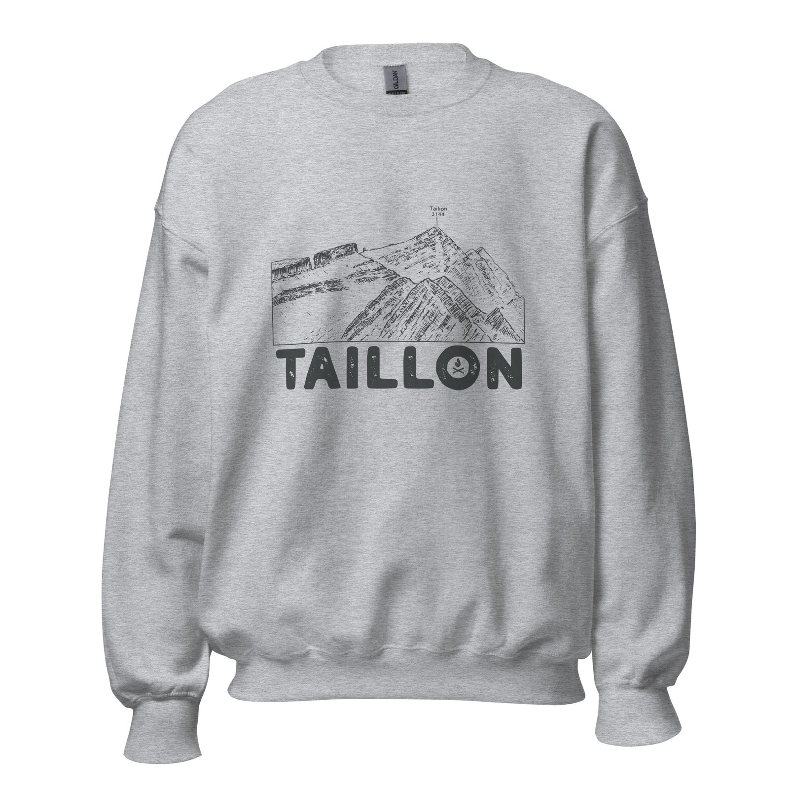 La sudadera unisex «Taillón» rinde homenaje a una de las cumbres más emblemáticas de los Pirineos. Luce el perfil del pico Taillón con el nombre estampado en grande, ideal para montañeros y amantes de la aventura.