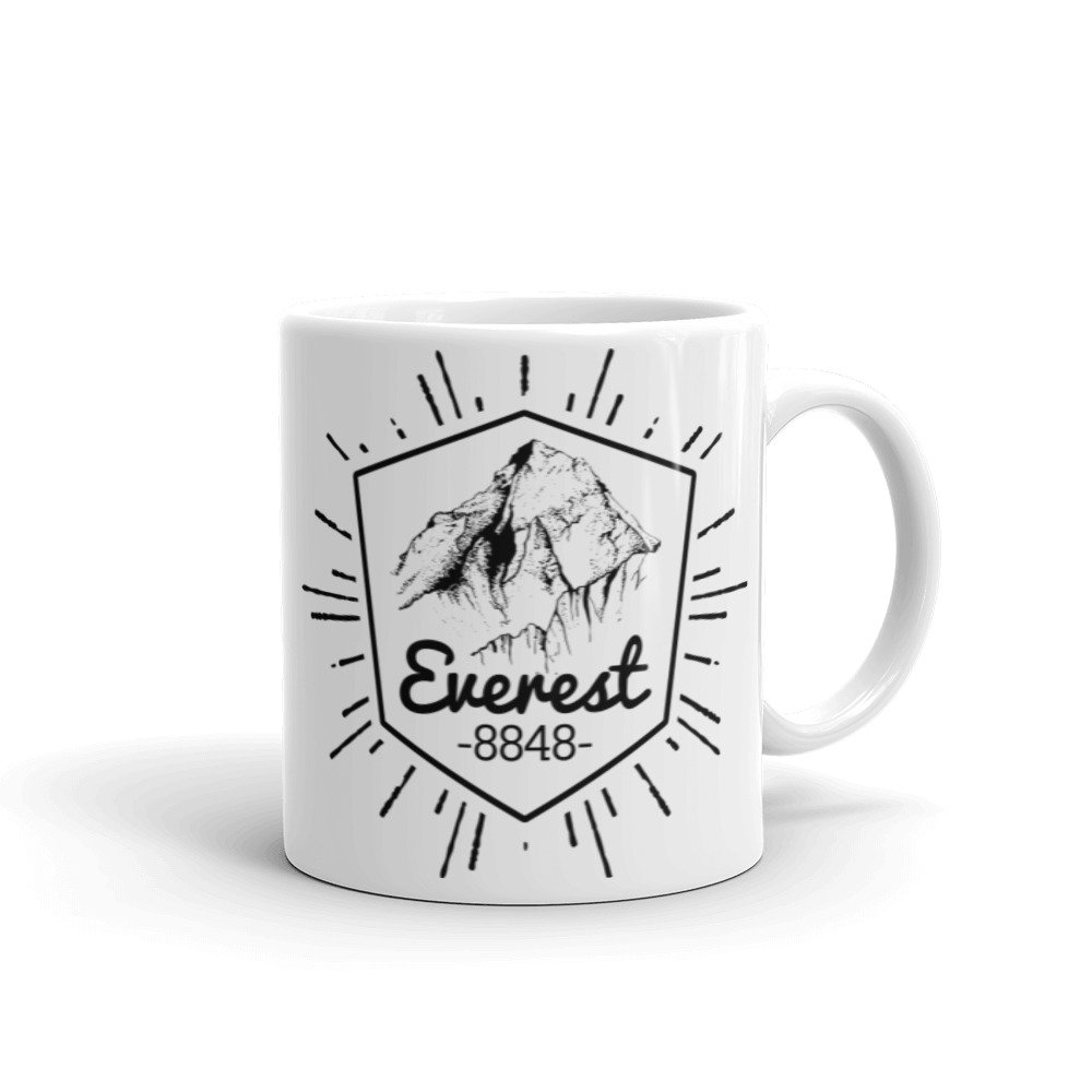 Taza que hace honor a la montaña mas alta del mundo El monte Everest es la montaña más alta de la superficie del planeta Tierra, con una altitud de 8848 metros sobre el nivel del mar. Está localizada en el continente asiático, en la cordillera del Himalaya, concretamente en la subcordillera de Mahalangur Himal; marca la frontera entre China y Nepal, considerada como la frontera más alta del mundo