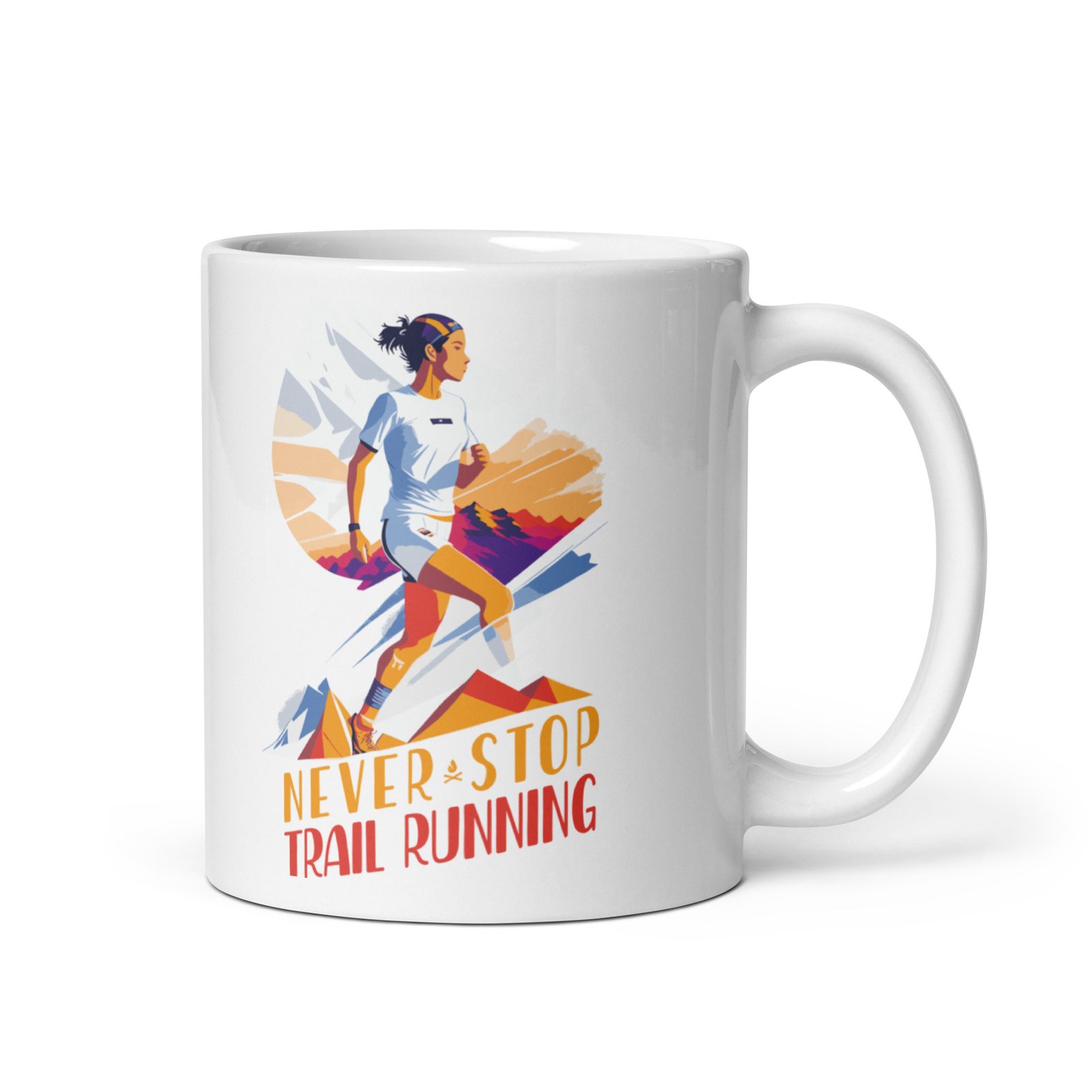 ¡No dejes pasar la oportunidad de tener esta increíble taza de cerámica blanca brillante con la silueta de una corredora de montaña! Destaca del resto y lleva tu amor por el trail running más allá de las carreras.