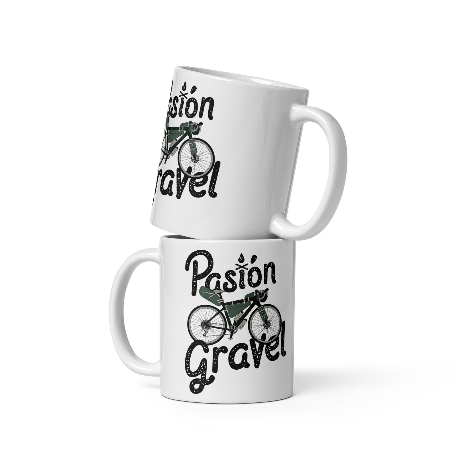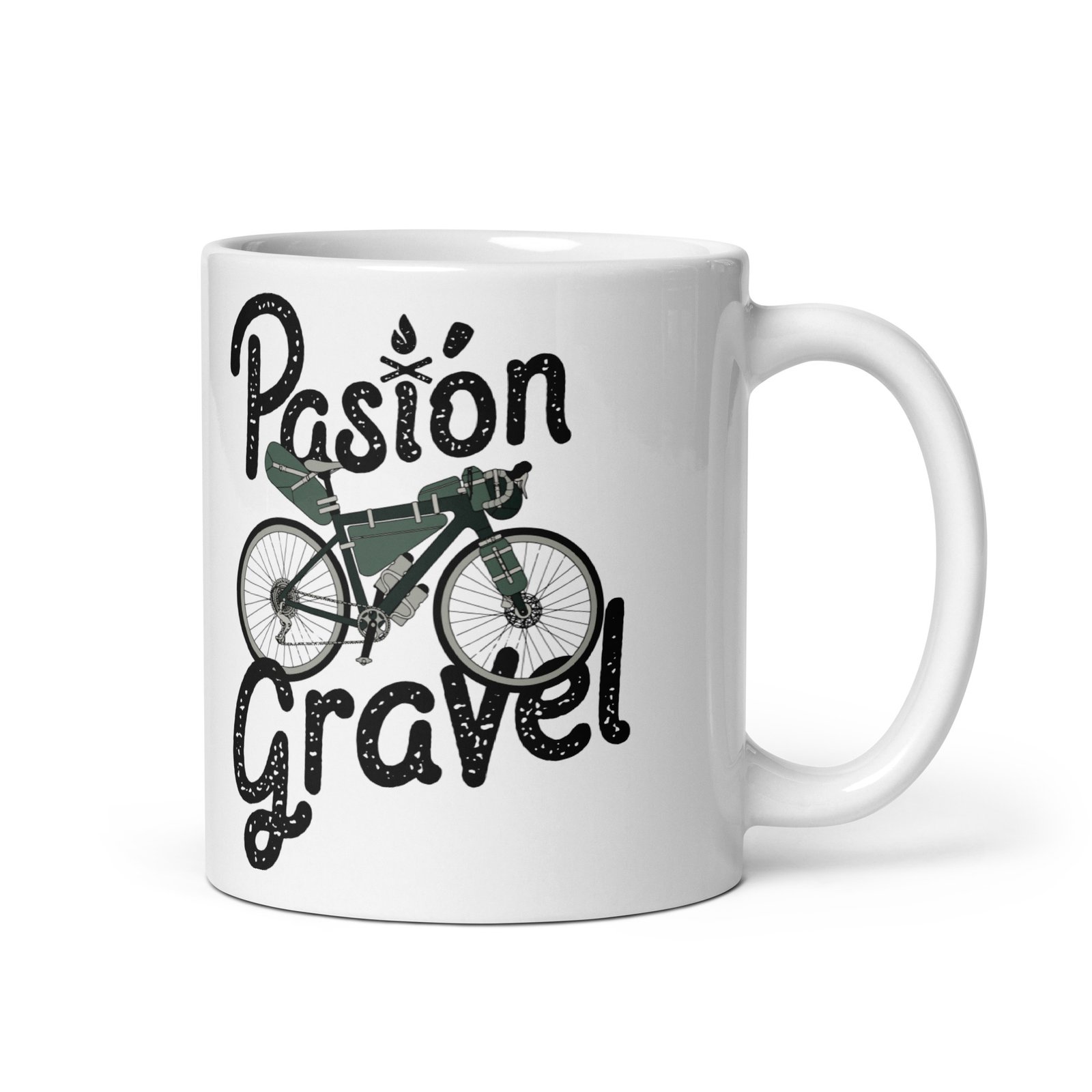 El diseño de esta taza es único y exclusivo. La ilustración de la bicicleta gravel en tonos verdes resalta sobre el fondo blanco brillante, creando un contraste llamativo y atractivo. La palabra «Pasión Gravel» escrita debajo de la ilustración muestra tu dedicación y amor por este deporte. ¡Esta taza sin duda captará la atención de todos!