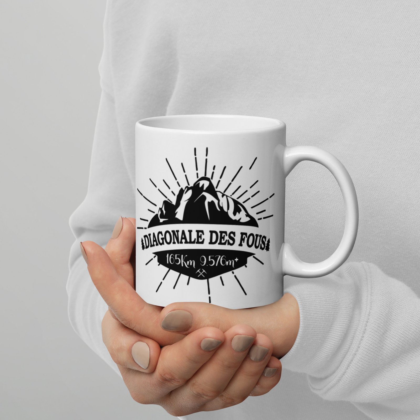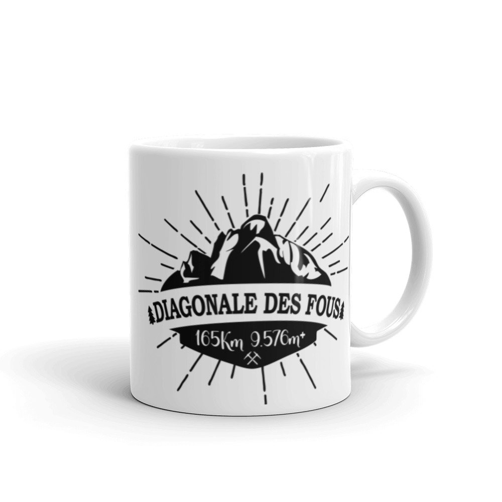 Taza en honor a la carrera mítica de larga distancia, La diagonale des fous (Diagonal de los locos) que es una ultra maratón de montaña que tiene lugar una vez al año desde 1989 en la isla de Reunión, un departamento de ultramar francés del océano Índico situado entre Madagascar y Mauricio.