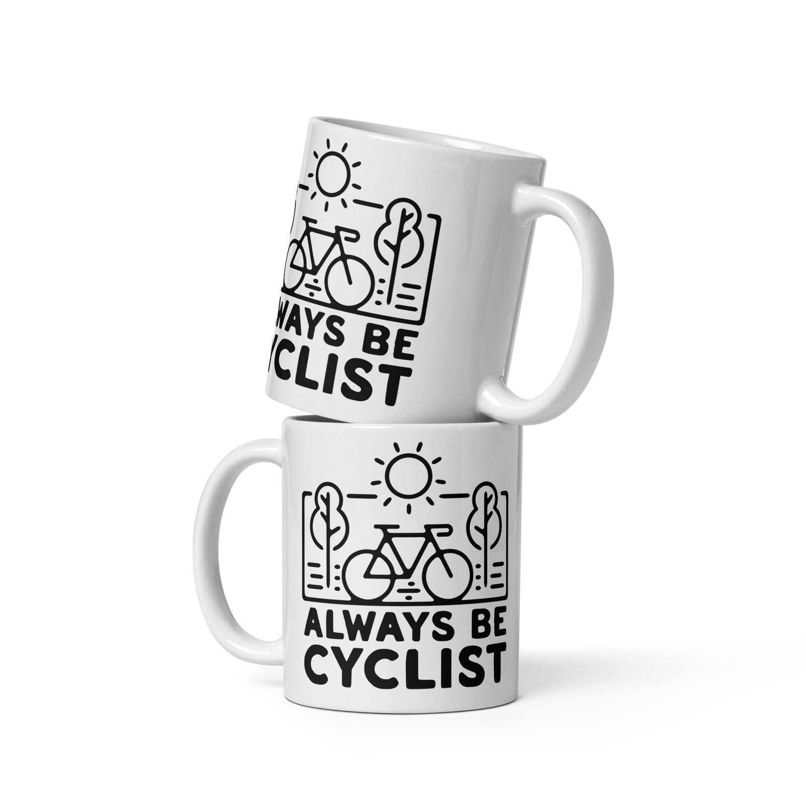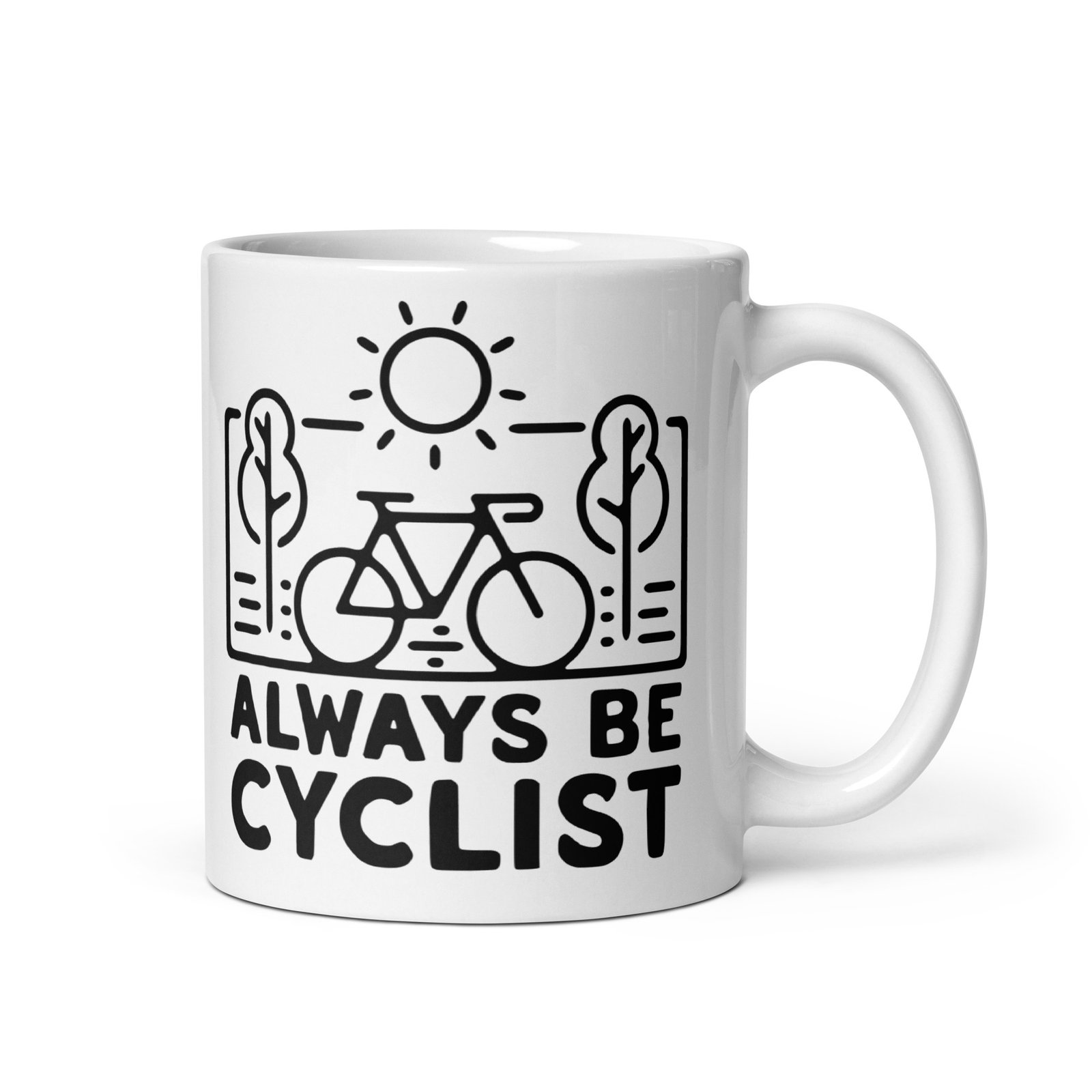 La taza de cerámica «Always Be Cyclist» transforma cada pausa para el café en una declaración de tu pasión por las dos ruedas.