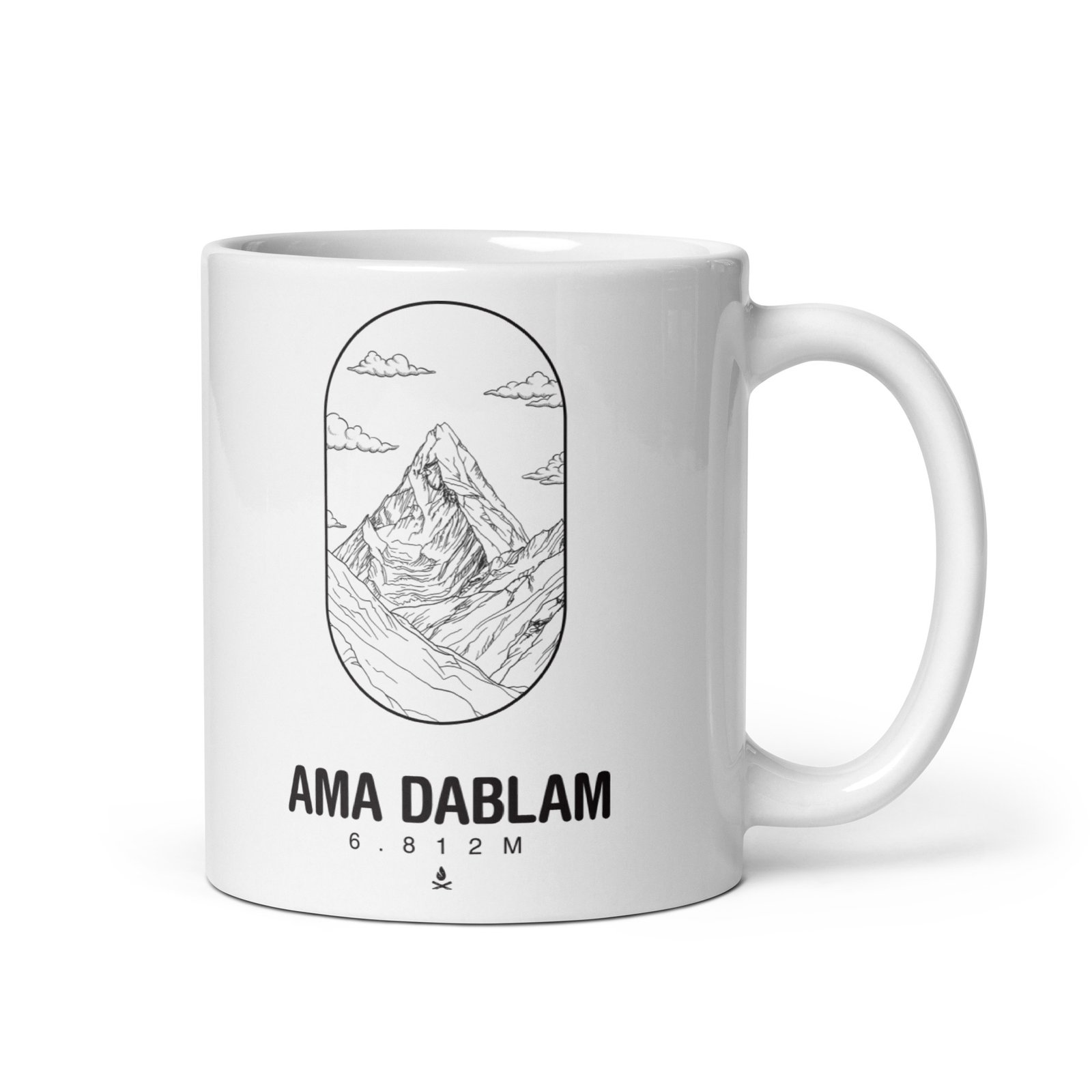 La taza de cerámica blanca «Ama Dablam» combina un diseño elegante y minimalista con la imponente belleza de una de las montañas más icónicas del Himalaya. Su diseño presenta una ilustración detallada del Ama Dablam (6.812 m), evocando aventura, calma y conexión con la naturaleza cada vez que disfrutas tu bebida favorita.