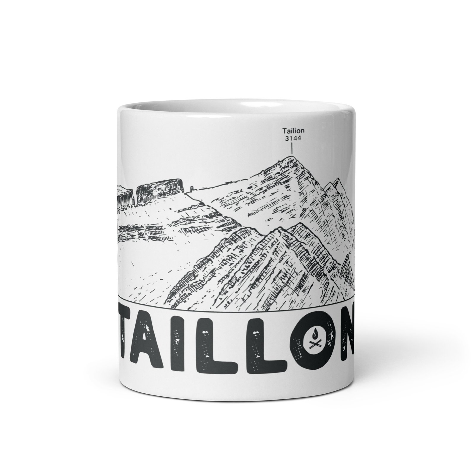 La taza presenta un diseño detallado del perfil del pico Taillón, destacando la majestuosidad de la montaña con precisión artística. Cada trazo del dibujo resalta la singularidad del paisaje, convirtiendo la taza en una obra de arte funcional. Además, el nombre «Taillón» aparece en letras grandes debajo del dibujo, aportando un toque distintivo y auténtico.
