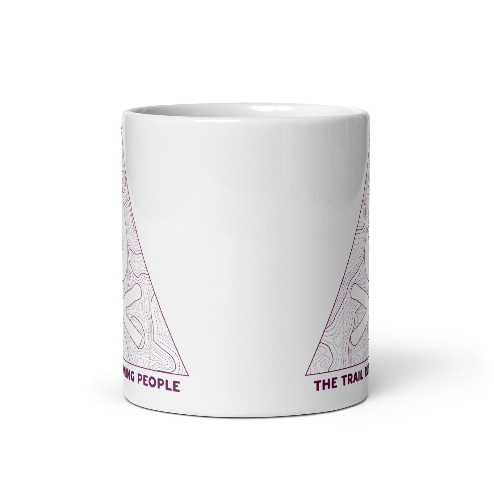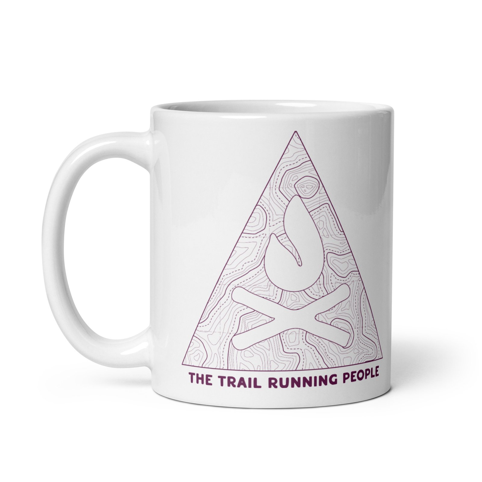 Con el diseño minimalista tribal, esta taza presenta el triángulo con líneas topográficas que forman la llama sobre bastones cruzados de trail running, todo dibujado en trazos finos granate. El mensaje «THE TRAIL RUNNING PEOPLE» en la base proclama tu identidad. Es como tener tu mantra trail runner en la mano cada mañana.